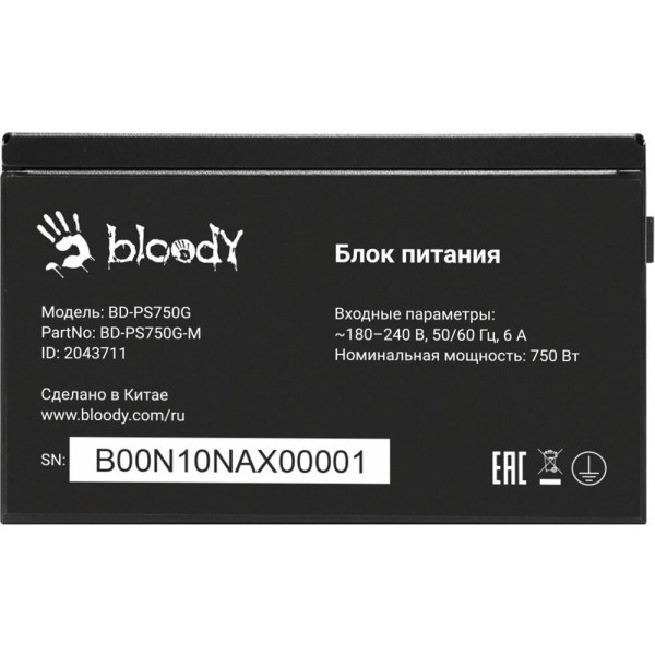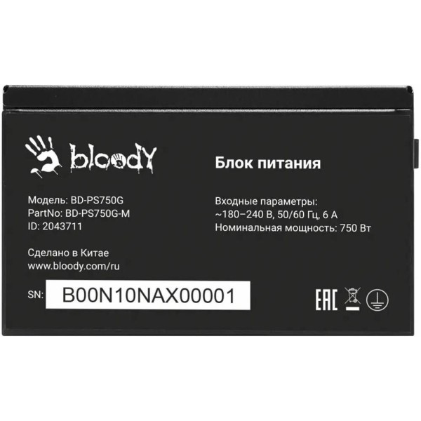 BLOODY Блок питания BD-PS750G, 750Вт, 120мм, черный, retail [bd-ps750g-m]