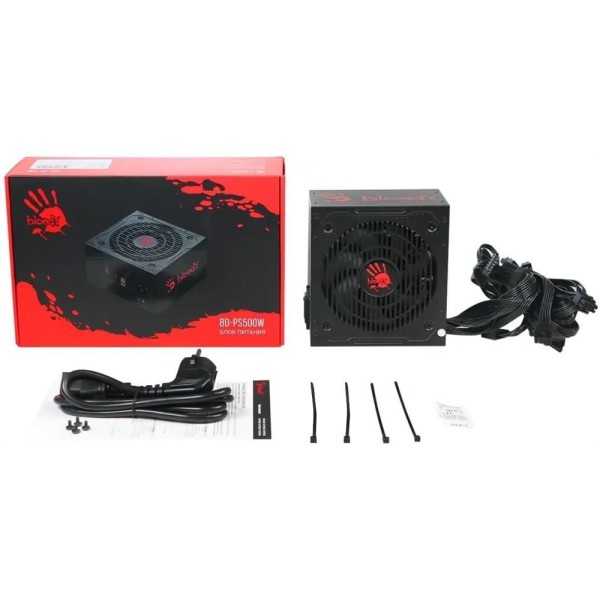 BLOODY Блок питания ATX 500W BD-PS500W 80 PLUS WHITE (20+4pin) APFC 120mm fan 6xSATA RTL