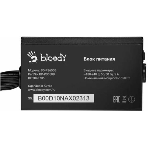 BLOODY Блок питания ATX 650W BD-PS650B 80+ bronze (20+4pin) APFC 120mm fan 6xSATA RTL