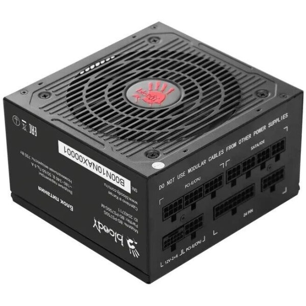 BLOODY Блок питания ATX 750W BD-PS750G 80+ gold (20+4pin) APFC 120mm fan color LED 6xSATA Cab Manag RTL