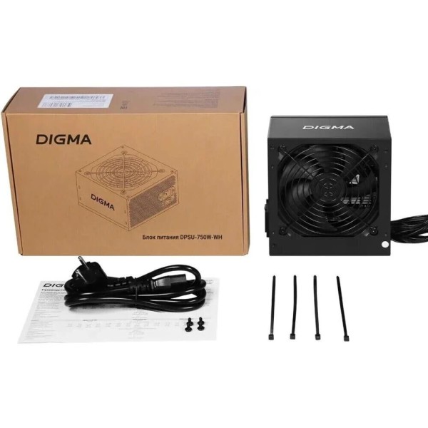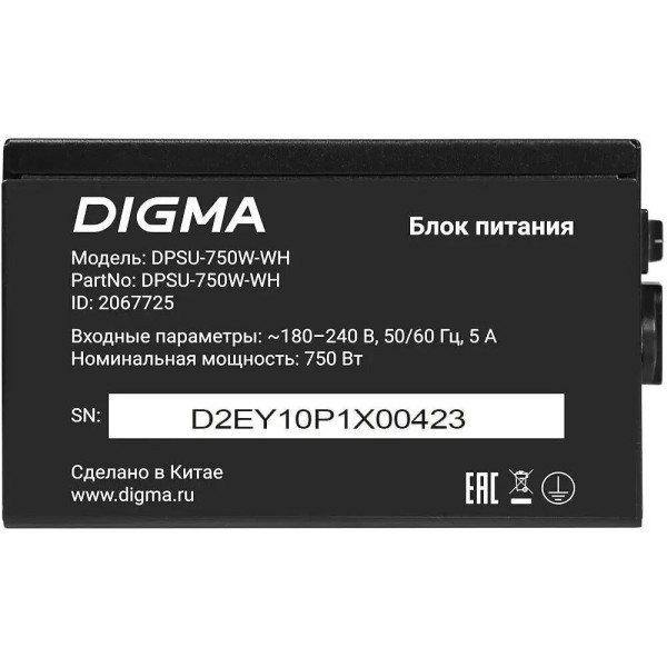 DIGMA Блок питания ATX 750W DPSU-750W-WH 80 PLUS WHITE (20+4pin) APFC 120mm fan 6xSATA RTL