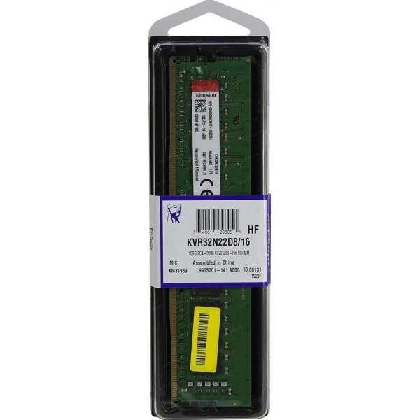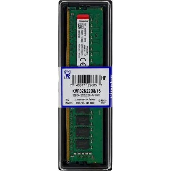 KINGSTON Память 16GB 3200MHz KVR32N22D8/16 VALUERAM RTL PC4-25600 CL22 DIMM 288-pin 1.2В dual rank Ret