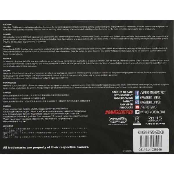 PATRIOT Модуль памяти DIMM DDR4-3600 64GB (32GBx2) PVS464G360C8K