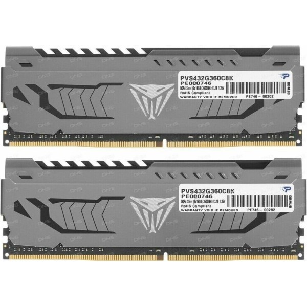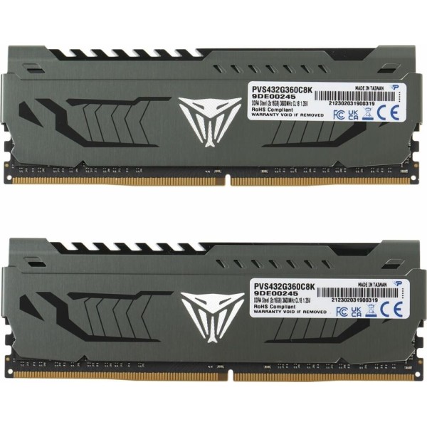 PATRIOT Память DDR4 2x16GB 3600MHz PVS432G360C8K Viper Steel RTL Gaming PC4-28800 CL18 DIMM 288-pin 1.35В single rank с радиатором Ret