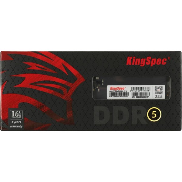 KINGSPEC Память DDR5 16GB 4800MHz KS4800D5P11016G RTL PC5-38400 CL40 DIMM 288-pin 1.1В single rank Ret