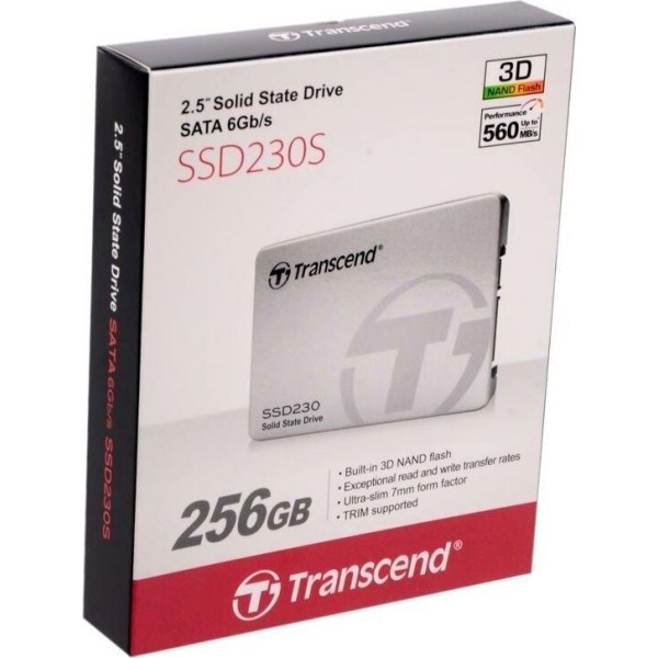 Объем 256 Гб, форм-фактор 2.5", интерфейс SATA III 6Gb/s 600 МБ/с, скорость записи: 520 МБ/с, скорость чтения: 560 МБ/с (TS256GSSD230S)