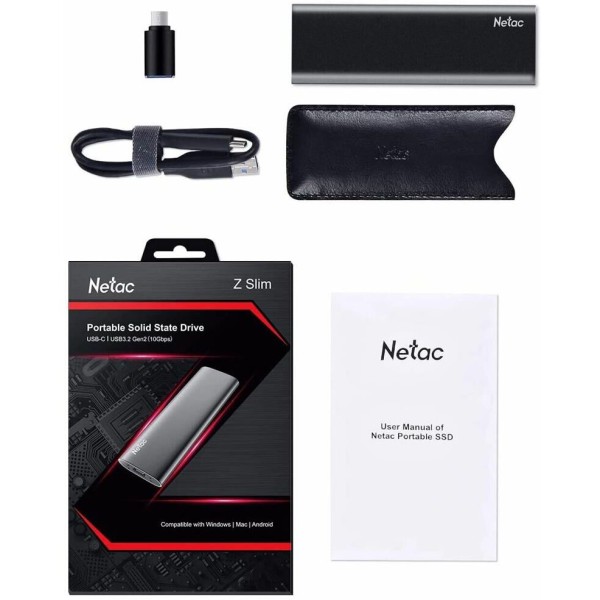 NETAC SSD жесткий диск USB-C 1TB EXT. BLACK NT01ZSLIM-001T-32BK