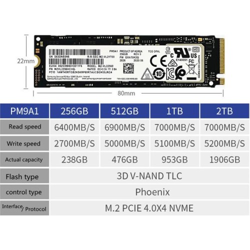 [накопитель] Твердотельный накопитель Samsung SSD PM9A1,[MZVL21T0HCLR-00B00] 1TB, M.2(22x80mm), NVMe, PCIe 4.0 x4, R/W 7000/5100MB/s, IOPs 1 000 000/850 000 (12 мес.) Твердотельный накопитель Samsung SSD PM9A1,[MZVL21T0HCLR-00B00] 1TB, M.2(22x80mm), NVMe, PCIe 4.0 x4, R/W 7000/5100MB/s, IOPs 1 000 000/850 000 (12 мес.) Background Garbage Collection да масса(кг) 0.02 GTD Number 10005030/220423/3104828 GTIN 00000000000000 IOmeter, скорость записи 4Кб файлов, глубина очереди=32 850000 Cтрана-производитель