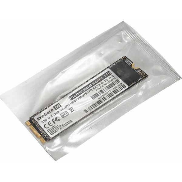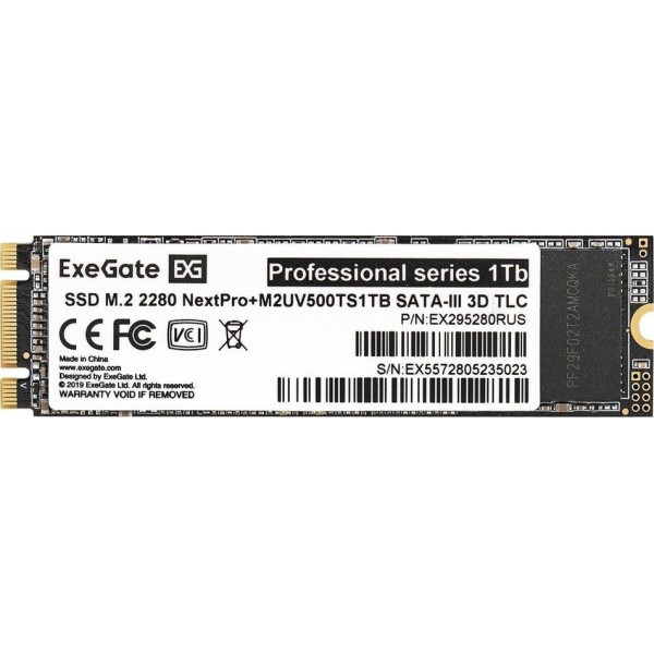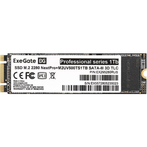 [носитель информации] Exegate SSD M.2 2280 1Tb ExeGate NextPro+ M2UV500TS1TB (SATA-III, 22x80mm, 3D TLC) [EX295280RUS] предупреждение Для сервера данный накопитель не подходит из-за недостаточного ресурса ПРЕДУПРЕЖДЕНИЕ2 При превышении параметра 'Ресурс в TBW' или 'Ресурс DWPD', указанного в спецификации, устройство снимается с гарантии. Проверить состояние SSD можно с помощью специальной утилиты. К быстрому исчерпанию ресурса приводит нецелевое использование SSD накопителя, например, майнинг.