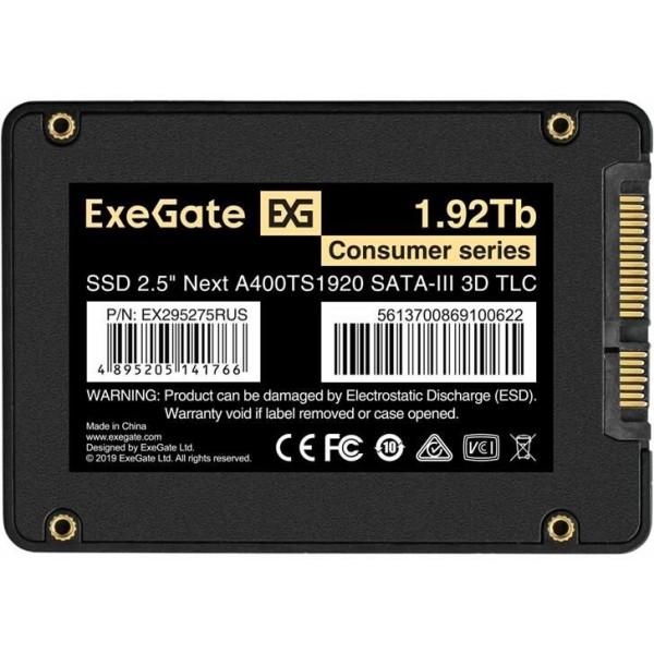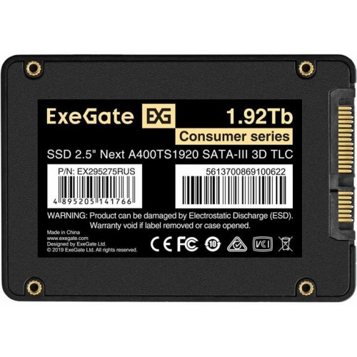 [носитель информации] Exegate SSD 2.5' 1.92Tb ExeGate Next A400TS1920 (SATA-III, 3D TLC) предупреждение Для сервера данный накопитель не подходит из-за недостаточного ресурса ПРЕДУПРЕЖДЕНИЕ2 При превышении параметра 'Ресурс в TBW' или 'Ресурс DWPD', указанного в спецификации, устройство снимается с гарантии. Проверить состояние SSD можно с помощью специальной утилиты. К быстрому исчерпанию ресурса приводит нецелевое использование SSD накопителя, например, майнинг. Background Garbage Collection - масса(кг)