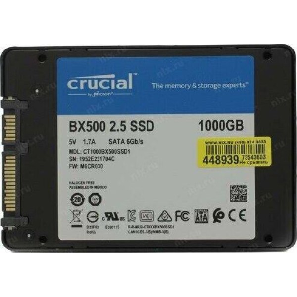 CRUCIAL SSD накопитель BX500 CT1000BX500SSD1 1ТБ, 2.5", SATA III, SATA
