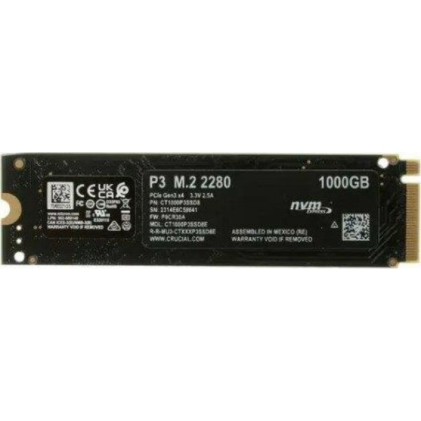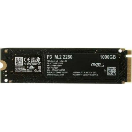 CRUCIAL SSD накопитель P3 CT1000P3SSD8 1ТБ, M.2 2280, PCIe 3.0 x4, NVMe, M.2