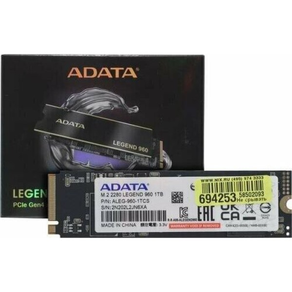 A-DATA SSD накопитель Legend 960 ALEG-960-1TCS 1ТБ, M.2 2280, PCIe 4.0 x4, NVMe, M.2