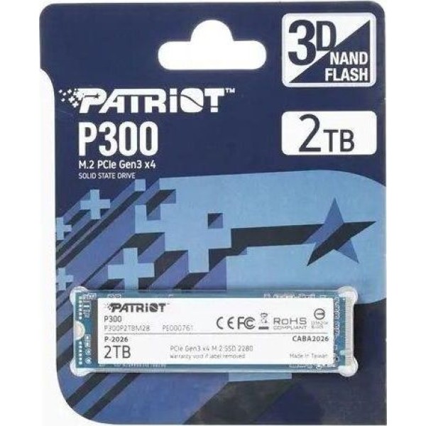 PATRIOT SSD накопитель P300 P300P2TBM28 2ТБ, M.2 2280, PCIe 3.0 x4, NVMe, M.2