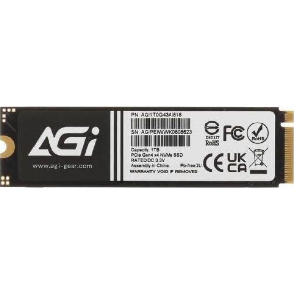 AGI SSD накопитель 1T0G43AI818 1ТБ, M.2 2280, PCIe 4.0 x4, NVMe, M.2