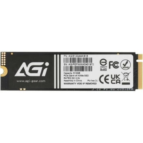 AGI SSD накопитель AI818 512G44AI818 512ГБ, M.2 2280, PCIe 4.0 x4, NVMe, M.2, rtl