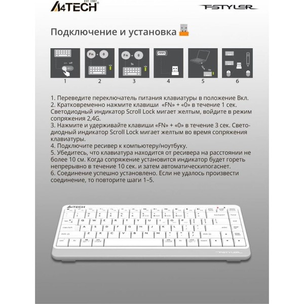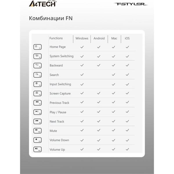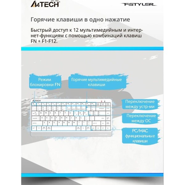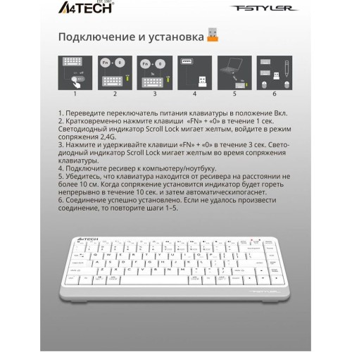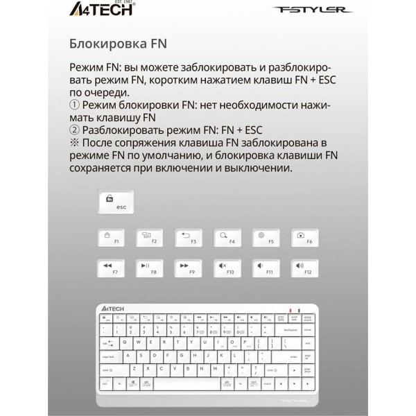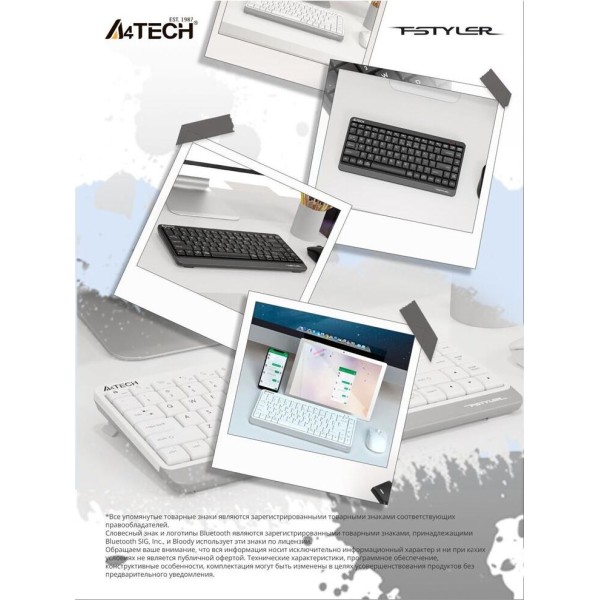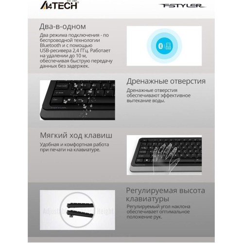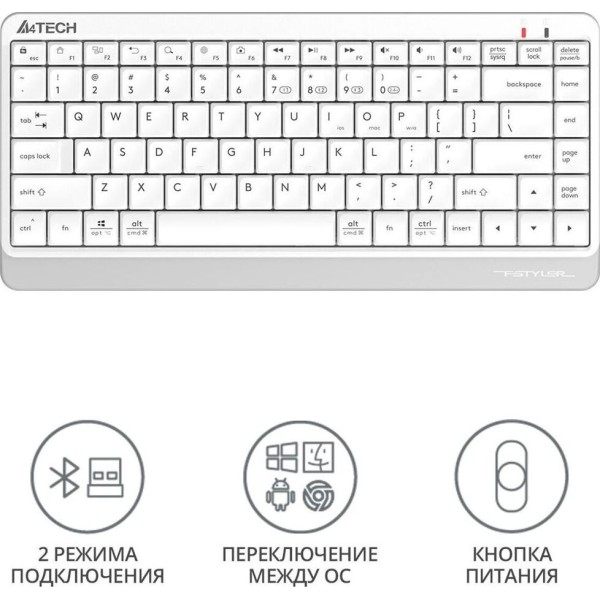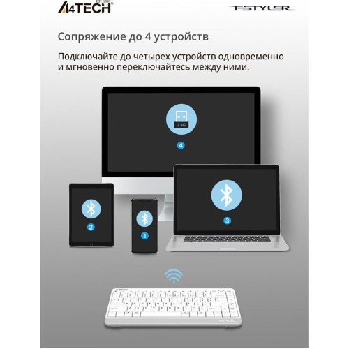 A4TECH Клавиатура Fstyler FBK11, USB, Bluetooth/Радиоканал, белый серый [fbk11 white]