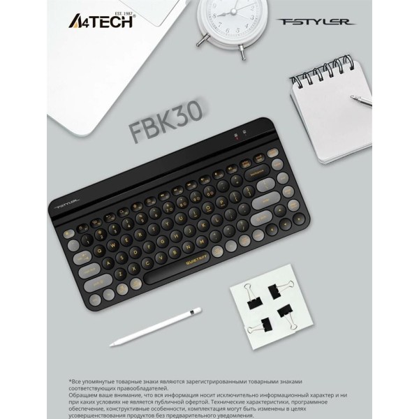A4TECH Клавиатура Fstyler FBK30, USB, Bluetooth/Радиоканал, черный [fbk30 black]