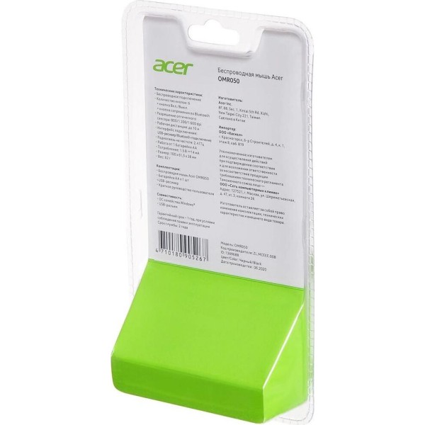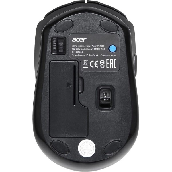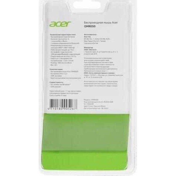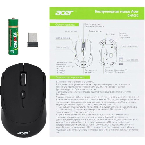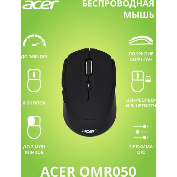 ACER Мышь беспроводная OMR050, Bluetooth/Радио, оптическая, USB, 1600dpi, черный [zl.mceee.00b]