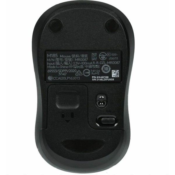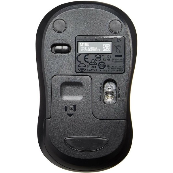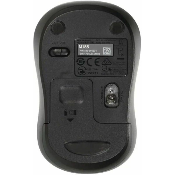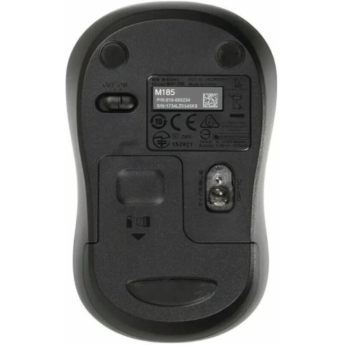 LOGITECH Мышь беспроводная M185, радио, оптическая, USB, 1000dpi, черный и серый [910-006540]
