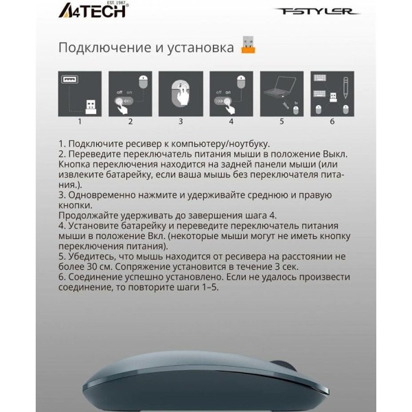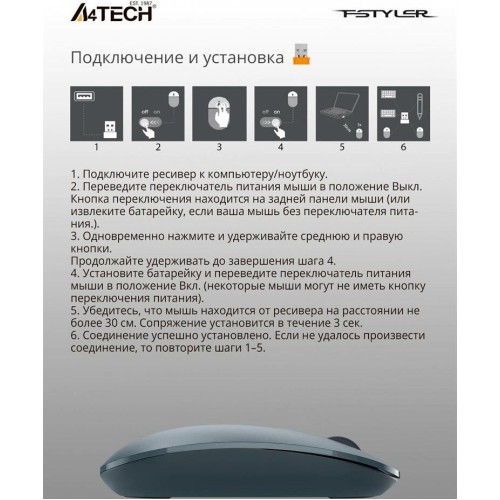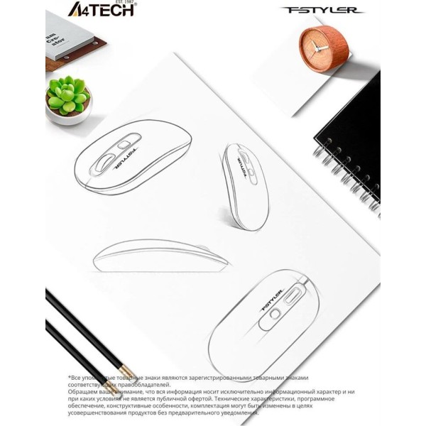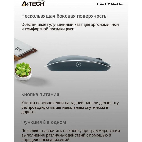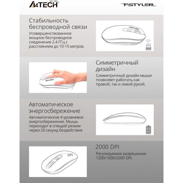 A4TECH Мышь Fstyler FG20 пепельный/синий оптическая 2000dpi беспров. USB для ноутбука 4but (FG20 ASH BLUE)