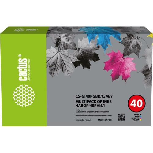 CACTUS Чернила CS-GI40PGBK/C/M/Y голубой/пурпурный/желтый/черный набор 4x350мл для Canon Pixma G5040/G6040/GM2040