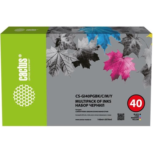 CACTUS Набор чернил CS-GI40PGBK/C/M/Y, для Canon, 350мл, голубой/пурпурный/желтый/черный