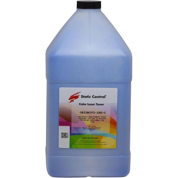 STATIC CONTROL Тонер OKIUNIV3-1KG-C, для Oki C3300N/5500, голубой, 1000грамм, флакон