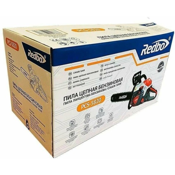 Бензопила Redbo PCS-5820 – это надежный и мощный инструмент, который значительно облегчит работу с деревом. Эргономичный дизайн и легкий вес позволяют долго использовать инструмент, не испытывая усталости и напряжения в руках. Основные характеристики: Объём двигателя - 58 см3; Мощность - 2.8 кВт (3,8 л/с); Длина шины - 508 мм./ 20"; Шаг цепи - 0,325"; Количество звеньев - 76 шт.; Толщина звена - 1,5 мм,; Емкость топливного бака - 550 мл.; Смесь бензин/масло - 25:1; Емкость масляного бака - 260 мл