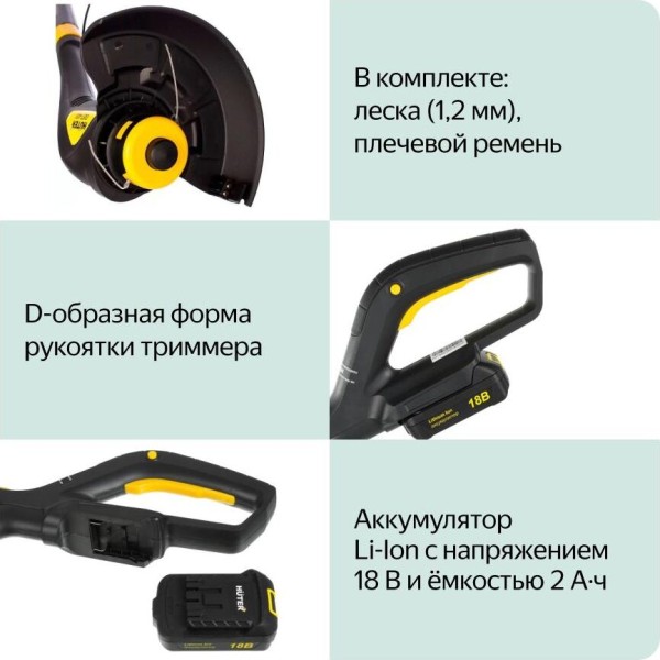 Триммер HUTER GET-18-2LI Аккумуляторный триммер