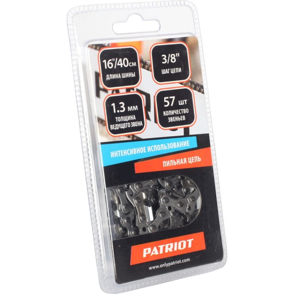 Цепь (3/8"; 1.3 мм; 57 звеньев) PATRIOT 862381357 предназначена к использованию с бензопилами. Подходит для валки деревьев, распиловки дров. Цепь выполнена из современных высококачественных материалов, что способствует улучшению линии реза и скорости пиления. Для нормальной эксплуатации и увеличения срока службы цепи необходима постоянная смазка. Шаг цепи, дюйм 3/8 (0.375) Количество звеньев 57 Длина шины (дюйм) 16 Длина шины (см) 40 Ширина паза (мм) 1.3