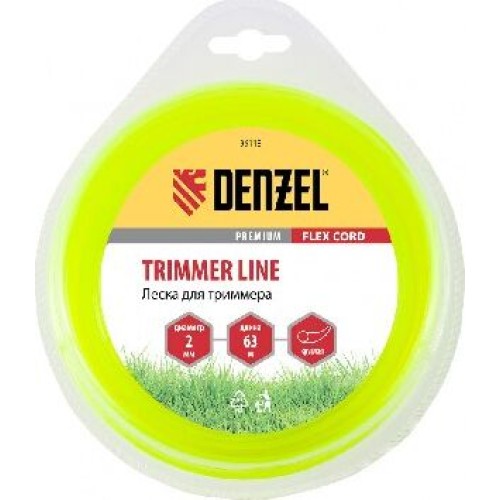 Леска для триммера DENZEL Леска для триммера круглая 2 мм х 63 м, блистер FLEX CORD 96118