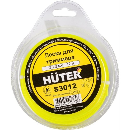 HUTER Леска для садовых триммеров S3012, 3мм, 12м [71/2/2]