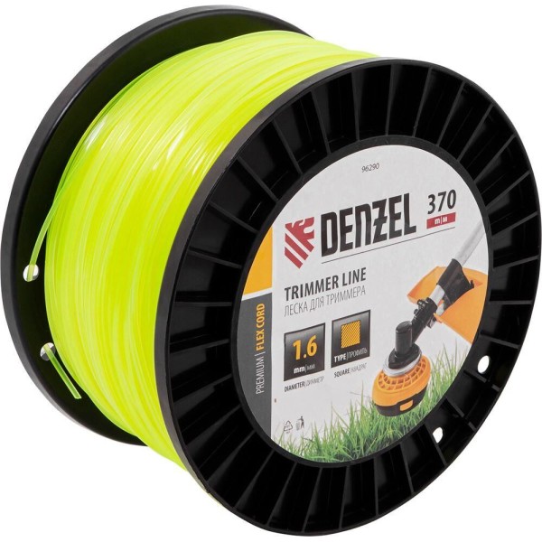 DENZEL Леска для триммера квадрат 1,6мм х 370м, на DIN катушке FLEX CORD 96290