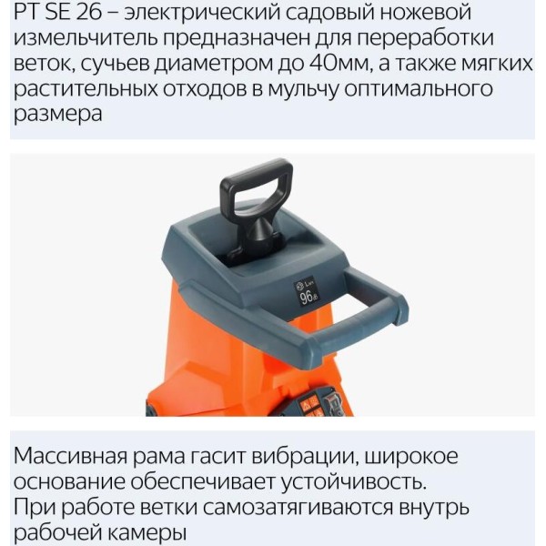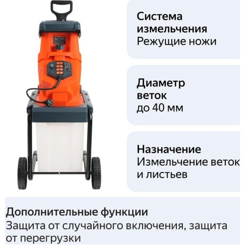 Объем мусоросборника, л 50 Мощность, Вт 2600 Тип двигателя электрический Макс. частота вращения ножей, об/мин 4500 Мусоросборник есть Измельчающая система режущий нож Материал корпуса пластик Материал для переработки ветки, листья, трава, кора, мягкие растения, солома Колеса есть Напряжение сети, В 220-230 Уровень шума при работе, дБ 111 Вес брутто, кг 16,1