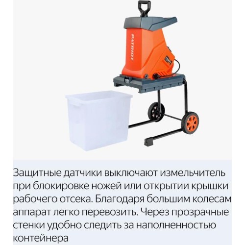 колеса, защита от перегрузки,защита от случайного включения,толкатель,колеса,загрузочная воронка,контейнер, Низкий уровень шума, защита от случайного включения, защита от перегрузки