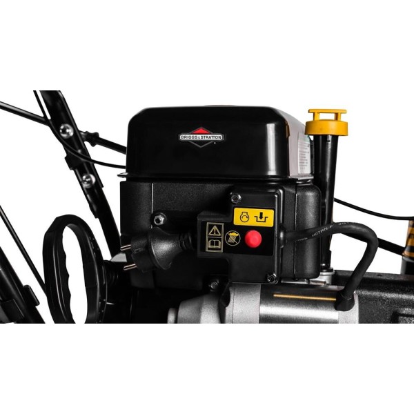 Тип системы очистки двухступенчатая Ширина захвата снега 56 см Высота захвата снега 51 см Материал шнека металл Форма шнеков рельефная (зубчатая) Максимальный угол поворота желоба выброса снега 180° Материал желоба выброса снега металл Регулировка положения желоба выброса снега механическая, с панели управления Регулировка положения снегозаборника механическая Двигатель Тип двигателя бензиновый, четырехтактный Производитель и модель двигателя Briggs and Stratton B&S950/13A137 Мощность двигателя 5 кВт / 6.50 л.с. Объем двигателя 208 см Объем топливного бака 3 л Электростартер есть Привод Самоходный есть Тип трансмиссии ступенчатая Количество передач 6 вперед, 2 назад Особенности Самоходный есть Фара есть Общие характеристики Диаметр колес 13" Масса 77.5 кг Дополнительная информация тип топлива - неэтилированный бензин с октановым числом не менее 92; объем масла в картере 0.6 л; тип запуска ручной и электрический от сети 230В; тип свечи зажигания F7RTC; фара 15