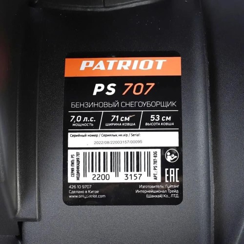 PATRIOT Снегоуборщик PS 707 T, бензиновый, 7л.с., самоходный [426109717]