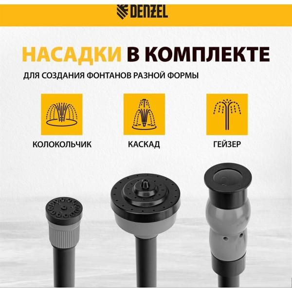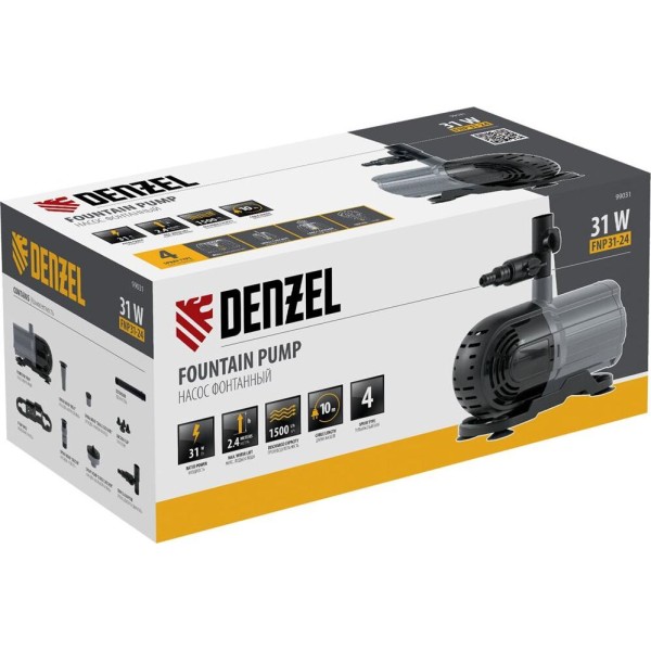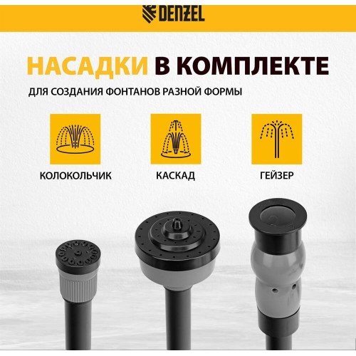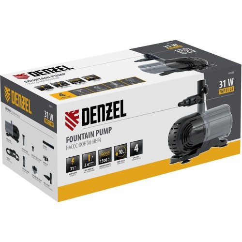 Фонтанный насос DENZEL Насос фонтанный FNP3124, 31 Вт, подъем 2,4 м, 1500 л/ч, колокольчик/2 каскада/гейзер 99031