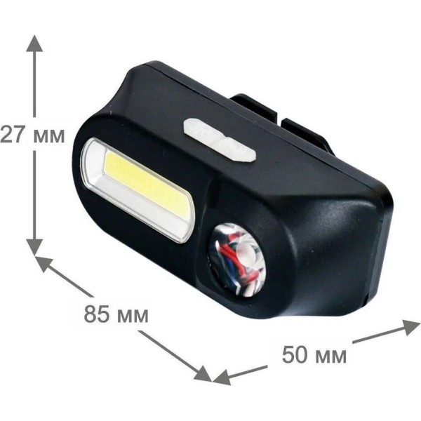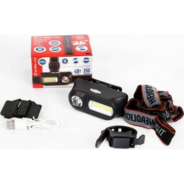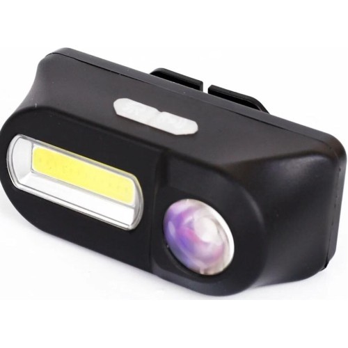 Фонарь светодиодный налобный аккумуляторный. Цвет корпуса: черный. Материал корпуса фонаря - пластик. Источники света - светодиоды XPE и COB с потребляемой мощностью 3 Вт и 3 Вт. Световой поток (максимальный режим boost) до 250 люмен. Дистанция освещения - до 50 метров. Режимы работы: 15 режимов. COB: 100% / 50% яркости / прерывистый. Точечный LED: 100% / 50% яркости / прерывистый. Плюс их различные комбинации. Два раздельных выключателя на каждый светодиод. Время работы при полностью заряженном аккумуляторе - COB: 3 - 5 ч, точечный LED - 5 - 8 ч. Заряд через порт Micro USB при помощи распространенных зарядных устройств для телефонов с Micro USB. Время заряда (ток заряда 0,5А) 6 - 8 часов. Комплектация: фонарь, ремешок, встроенный аккумулятор 18650 3,7 В 1200 мА-ч, кабель Micro USB / USB2.0, дополнительное крепление, инструкция, упаковка. Степень пыле-влаго-защиты IP43. Максимальный линейный размер фонаря 8,5 см. Вес с кабелем, креплением 0,114 кг