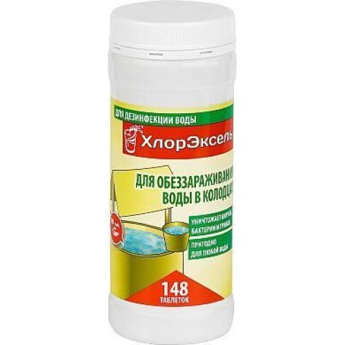 Таблетки Хлорэксель, 2,7 г., для воды в колодцах, ХЛОРЭКСЕЛЬ 2,7 г., для воды в колодцах, банка 0,4 кг. 101284