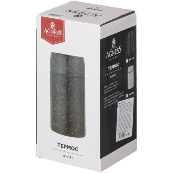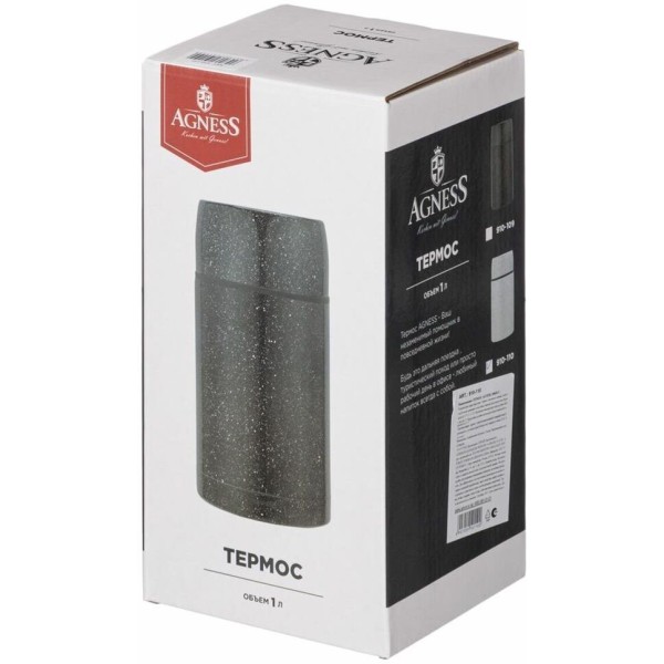 ТЕРМОС AGNESS С ШИРОКИМ ГОРЛОМ И КРЫШКОЙ-ЧАШКОЙ, 1000МЛ, КОЛБА НЖС, Материал: Нержавеющая сталь, Микроволновая печь: Нет, Посудомоечная машина: Нет, Серия: Agness.