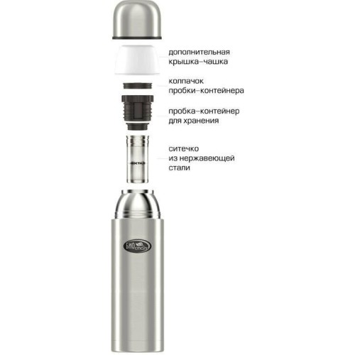 Объем 0,75л * Сохранение тепла до 28 часов, Холода до 36 часов * Вес 510гр * Термос с узким горлом относится к серии «ОХОТА» премиум-класса. Термосы укомплектованы пробкой с емкостью для чая или трав, а также специальным удобным ситечком для заваривания из хирургической стали 18/8. Даже самые мелкие листья останутся в ситечке, созданном с применением лазерной перфорации, и вы сможете насладиться чистым и вкусным напитком. Диаметр отверстия в ситечке – всего 0,5 мм! Термосы этой серии вобрали в себя самые передовые энергосберегающие технологии и отличаются применением более совершенных термоизоляционных материалов, а так же новейшей технологией создания вакуума. Термос предназначен для хранения горячих и холодных напитков: чая, кофе и пр.