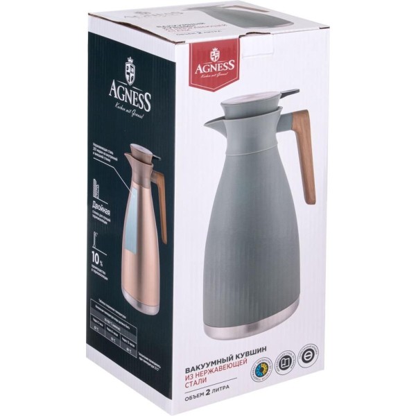 Кувшин AGNESS 734-113 вакуумный нерж. серебро 2,0л