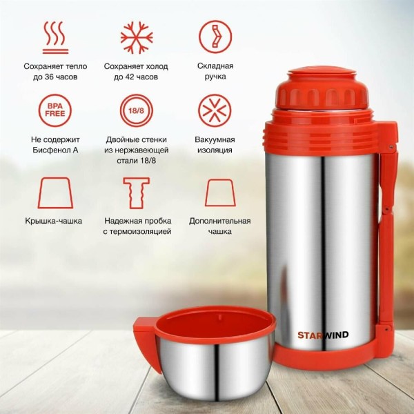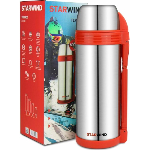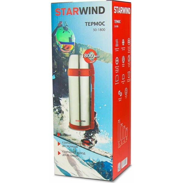 STARWIND Термос 30-1800 1.8л. серебристый/красный картонная коробка