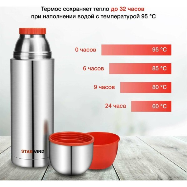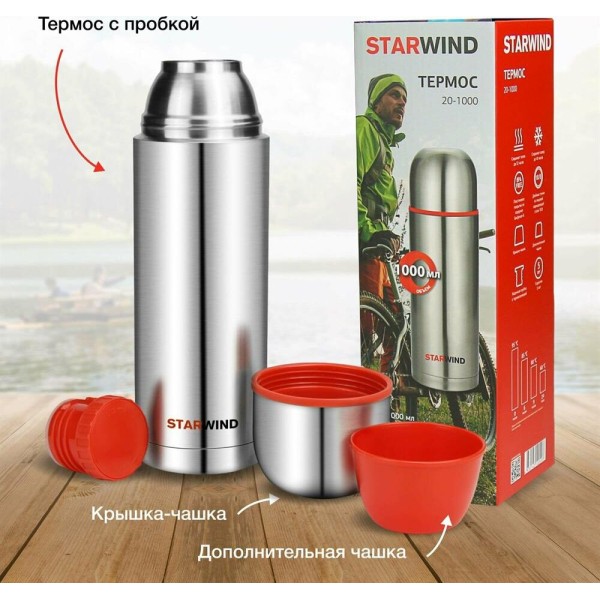 STARWIND Термос 20-1000, 1л, серебристый/ красный
