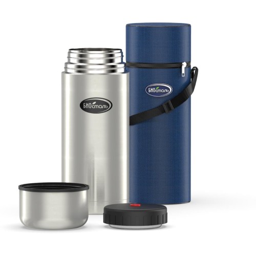 Термос с широкой горловиной, суповой объем: 1.2 л корпус из стали сохраняет тепло до 16 ч особенности: вакуумный, крышка-чашка чехол вес: 850 г