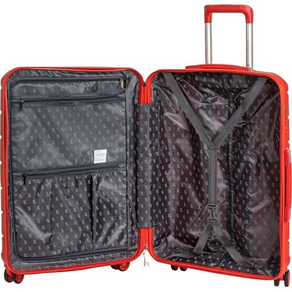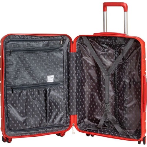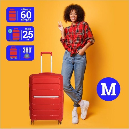 ОБЪЕМ ГЛАВНОГО ОТДЕЛЕНИЯ, Л.: 60 МАКСИМАЛЬНАЯ НАГРУЗКА, КГ.: 25 МАТЕРИАЛ КОРПУСА: полипропилен МАТЕРИАЛ ПОДКЛАДА: полиэстер ТИП ЗАСТЕЖКИ: молния МАТЕРИАЛ ФУРНИТУРЫ: металл КОДОВЫЙ ЗАМОК С ФУНКЦИЕЙ TSA: есть ЧИСЛО КОЛЕС: 4 ВРАЩЕНИЕ КОЛЕС НА 360°: есть РУЧКА: алюминиевая выдвигающаяся телескопическая НАКЛАДНЫЕ РУЧКИ: есть, 1 сверху и 1 сбоку ОСОБЕННОСТИ КОНСТРУКЦИИ: дополнительный внутренний карман-сетка на молнии ЦЕЛЕВАЯ АУДИТОРИЯ: мужчины и женщины ВЫСОТА, СМ.: 65 ШИРИНА, СМ.: 45,5 ГЛУБИНА, СМ.: 28 ВЕС ЧЕМОДАНА, КГ.: 2,4 СТРАНА-ИЗГОТОВИТЕЛЬ: Китай