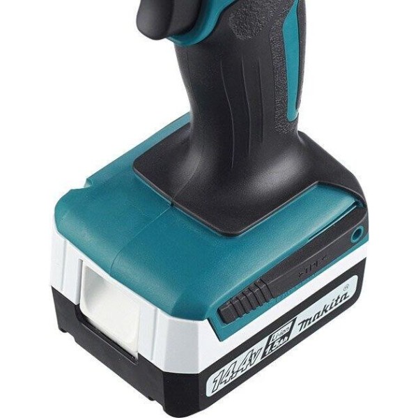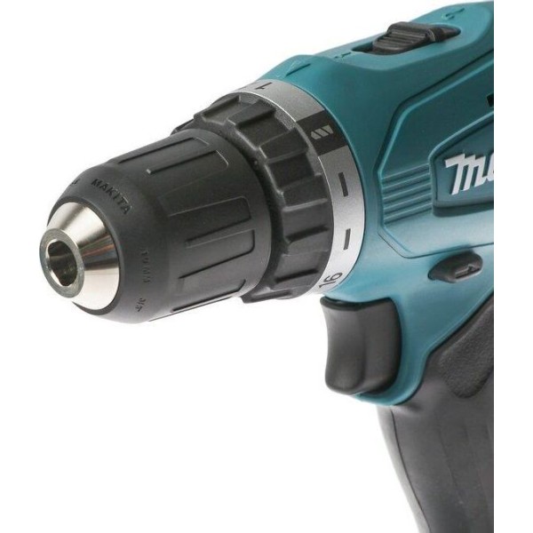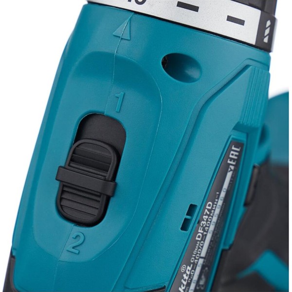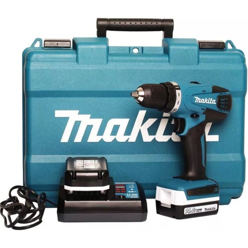 MAKITA DF347DWE - аккумуляторная дрель-шуруповёрт для монтажных и ремонтных работ. Сверлит отверстия в дереве, металле и пластике, работает с крепежом. Поставляется в кейсе. Сверлит металл, дерево и пластик. Заворачивает винты, шурупы, саморезы. Будет полезна во время ремонтных и монтажных работ. 16 положений муфты. Можно подобрать усилие для материалов разной плотности. Реверс меняет направление вращения. Пригодится, чтобы выкрутить крепёж. Быстрозажимной патрон упрощает замену оснастки. Дополнительные инструменты не нужны. Крутящий момент жесткий 30 Н/м, Крутящий момент мягкий 15 Н/м, Количество скоростей работы 2, Обороты 0-400; 0-1400 об/ мин, Патрон 1-10 мм, Напряжение аккумулятора 14.4 В, Емкость аккумулятора 1,5 А/ч, Тип аккумулятора Li-ion, Макс. диаметр сверления (металл) 13 мм, (дерево) 25 мм, Число ступеней крутящего момента 16, Реверс, Вес 1,4 кг, Линейка (тип) АКБ Makita BL14 G-series, Комплектация 2хLi-Ion аккумулятора емкостью 1,5Ач, Быстрозарядное устройство (+/-), Бита №2, Кейс.