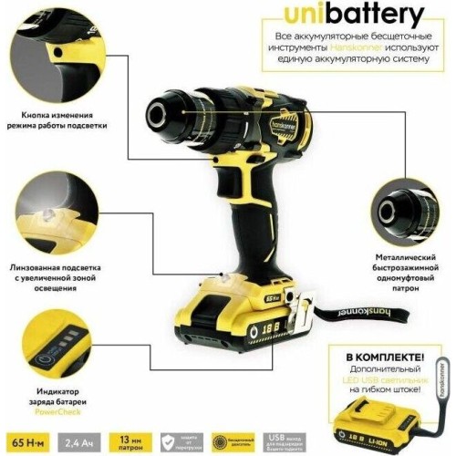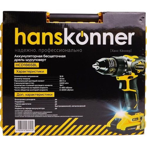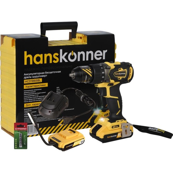 Аккумуляторные дрели HANSKONNER HCD1865BL кейс Аккумуляторные дрели